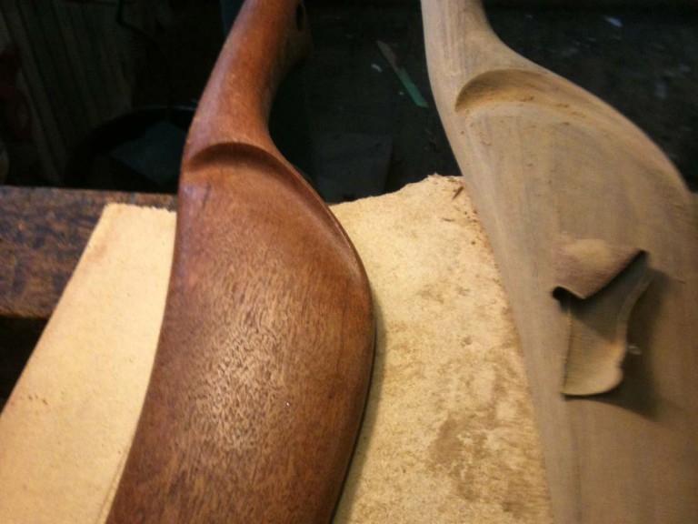 Finn Juhl er kendt for sin flotte organiske stil. Armlænet her er til en af Finn Juhls stole og er en krævende lille opgave, da formen er meget tredimensionel. Armlænet er udført i teaktræ. (find flere billeder)